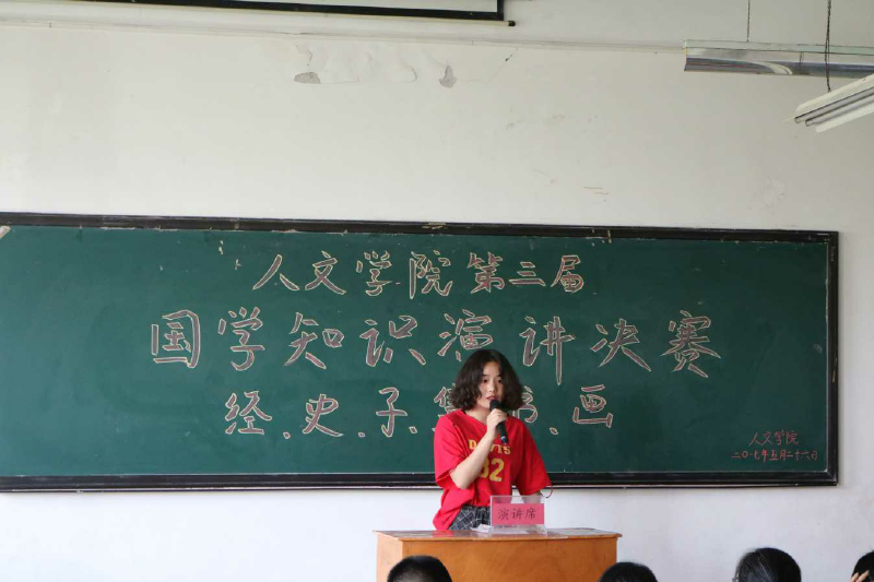 中午12:40,比赛正式开始。选手们围绕经、诗、子、集、书、画六个主题展开演讲。1号选手演讲的主题为“子”,通过对老子等思想家的介绍,为我们展现了一个又一个的大家形象;3号选手手执一把带有我国国画的折扇,让我们看到了一副栩栩如生的画面……选手们个个如八仙过海各显神通。其中,2号选手王瑞凭借渊博的国学知识以及不俗的演讲口才脱颖而出,摘得本次比赛的桂冠。最后,王慧老师对本次比赛的情况以及参赛选手进行了点评,在对同学们进行赞扬鼓励的同时也指出了其中的不足,提醒同学们以后比赛时注意这些问题,取得更好的成绩。