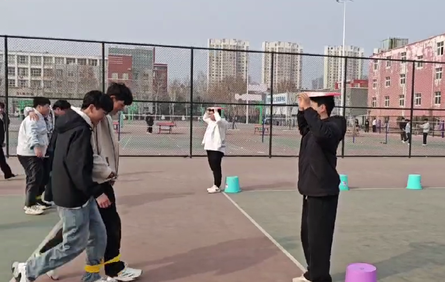 在趣味接力赛的赛场上,欢声笑语与加油助威声交织在一起,气氛热烈而欢乐。参赛队员们分成若干小组,每组两名成员的腿被绑在一起,先行进一段后,再由另一位成员头顶书本,倒着行走完成接力任务。比赛一开始,各组队员迅速调整姿势,努力保持平衡。他们一边小心翼翼地前进着,一边互相提醒着步伐节奏,生怕书本掉落或被对手超越。尽管绑腿和顶书本倒着行走让他们的动作略显笨拙,但团队成员之间的默契配合和顽强拼搏的精神却让比赛充满了趣味与感动。每当一组队员成功完成接力,观众们都会爆发出热烈的掌声和欢呼声,为他们的努力和团结喝彩。