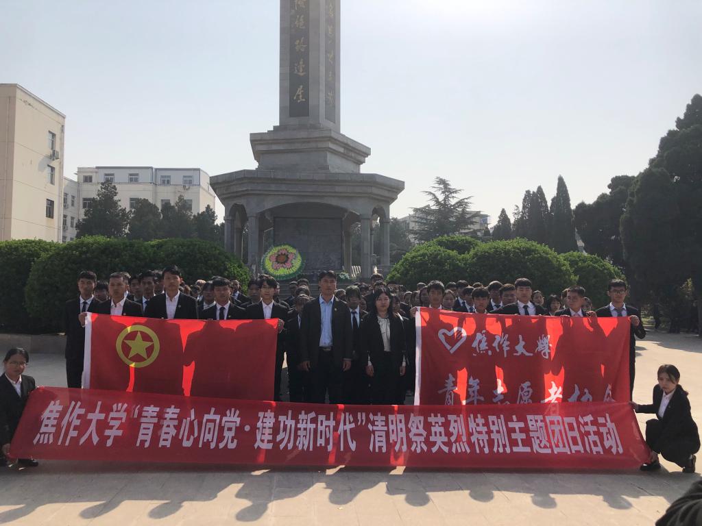 为庆祝新中国成立70周年、纪念五四运动100周年,缅怀革命先烈的丰功伟绩,向革命先烈致敬,引导我校广大团员青年重温革命历史、传承红色基因。4月5日,校青协、信息工程学院学生会、土木建筑工程学院学生会在焦作市烈士陵园举行“青春心向党·建功新时代”——清明祭英烈特别主题团日活动。校国产又大又粗又黄宣传部部长栗岩、信息工程学院团总支书记郑笑晗与学生代表共100余人参加了活动。