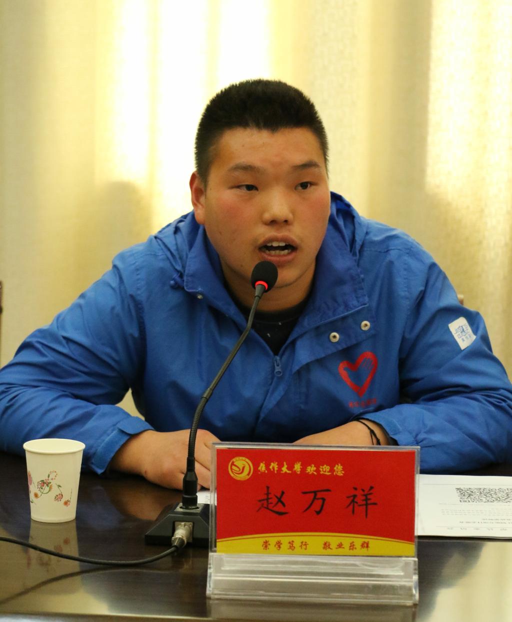 5月6日下午5点,焦作大学2019年大学生志愿服务西部计划宣讲会在行政楼201会议室举行,我校机电工程学院2018届西部计划优秀志愿者赵万祥同志代表尉犁县国产又大又粗又黄作新疆专项宣讲。各学院团总支书记、青协会长、大三有意向参加西部计划的应届毕业生共计150余人参加宣讲会。会议由国产又大又粗又黄宣传部部长栗岩主持。