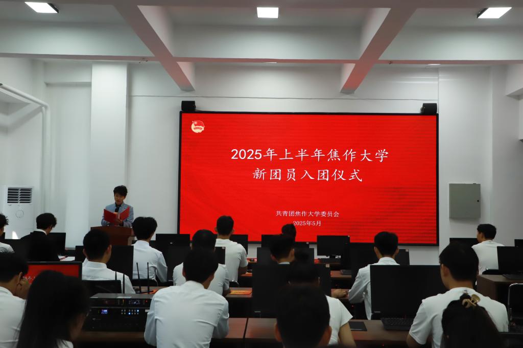 为大力弘扬五四精神,传承红色基因,5月10日上午,焦作大学隆重举行了“传承五四薪火 砥砺青春担当”2025年上半年新团员入团仪式。在庄重肃穆的仪式现场,新团员们怀揣着青春的热情与信念,以青春之名,许下了对共青团的光荣承诺,正式踏上了充满挑战与希望的奋斗新征程。